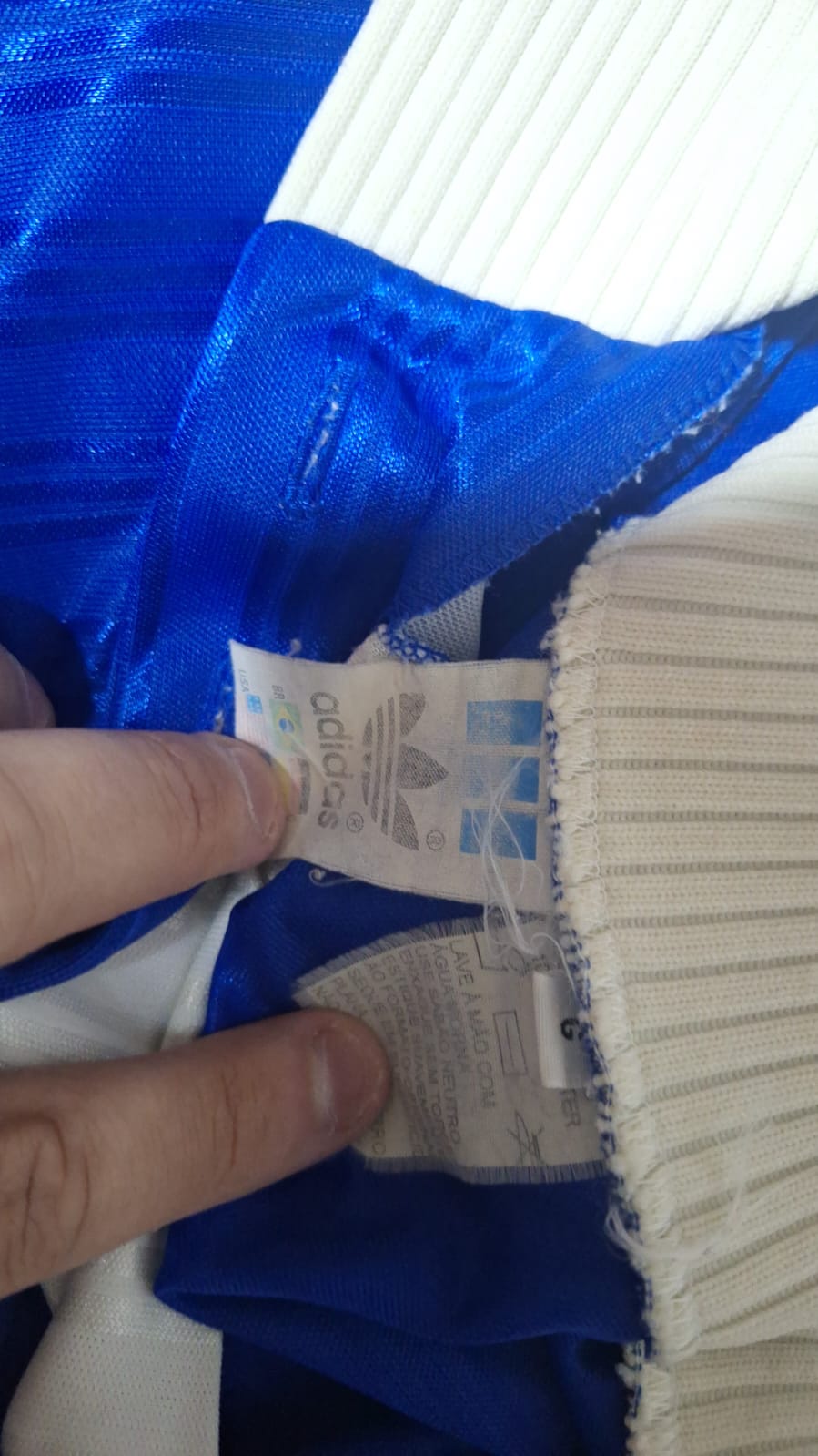 Cor: Azul tradicional da seleção, com o design clássico de gola polo e as icônicas três listras da Adidas nas mangas.